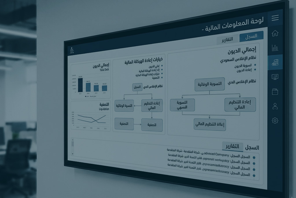 «Arab Charter» Bankruptcy applications are processed using an integrated legal and financial methodology that begins with studying the financial situation and analyzing the client’s credit status to determine the most appropriate path between preventive settlement, financial reorganization, or liquidation. We prepare a legal and financial report detailing the reasons for the default and the extent of the debt. We then submit applications electronically via the Bankruptcy Committee platform, following up on notices and correspondence with authorized bankruptcy trustees.